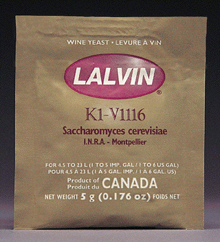 K1V-1116 - The K1V-1116 strain is a rapid starter with a constant and complete fermentation between 15° and 30°C (59° and 86°F), capable of surviving a number of difficult conditions, such as low nutrient musts and high levels of SO2 or sugar. Wines fermented with the K1V-1116 have very low volatile acidity, H2S and foam production.